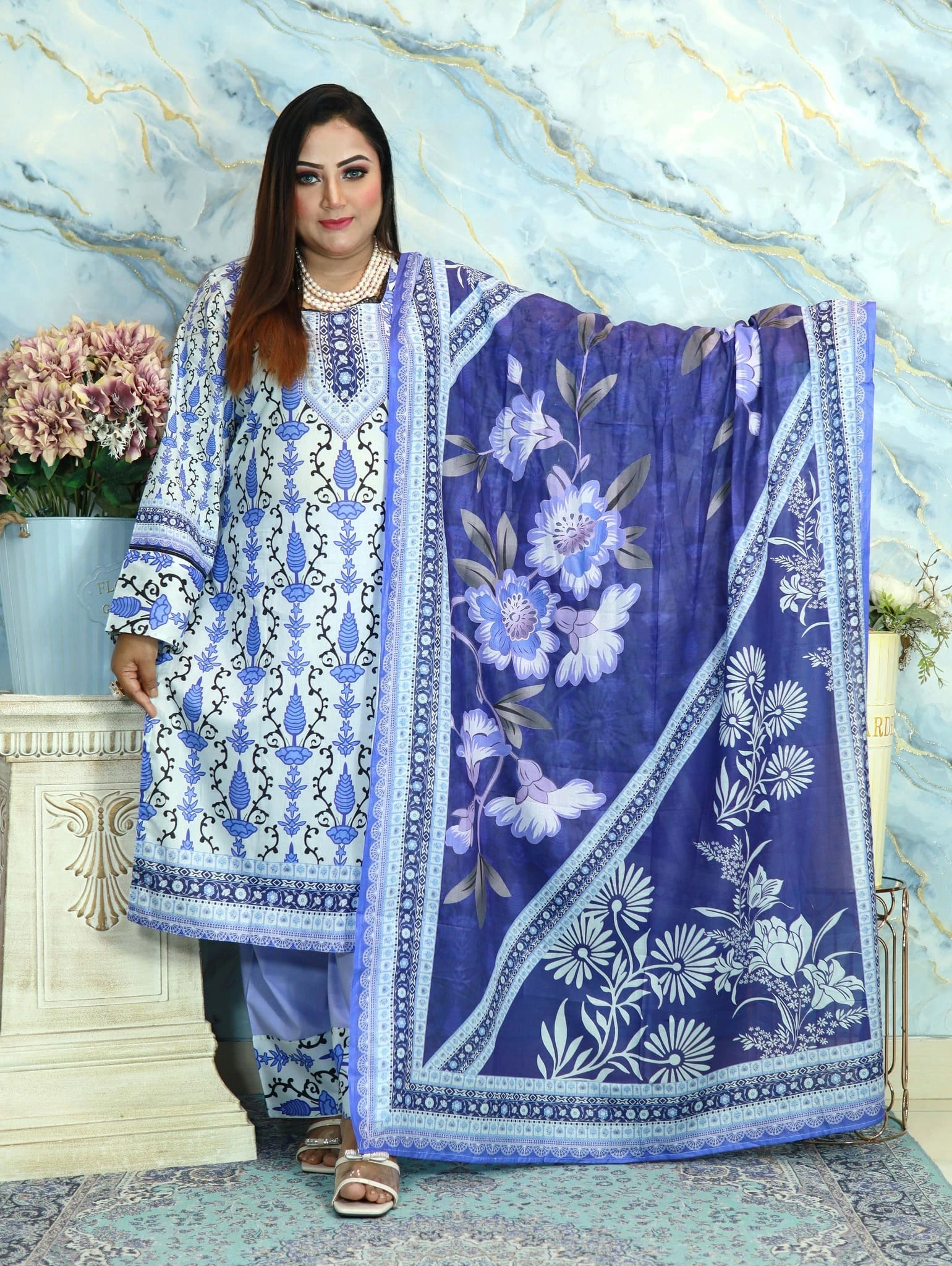 PAKISTANI INSPIRED MALHAR LAWN CODE ELEGENT 67 WHITE BLUE