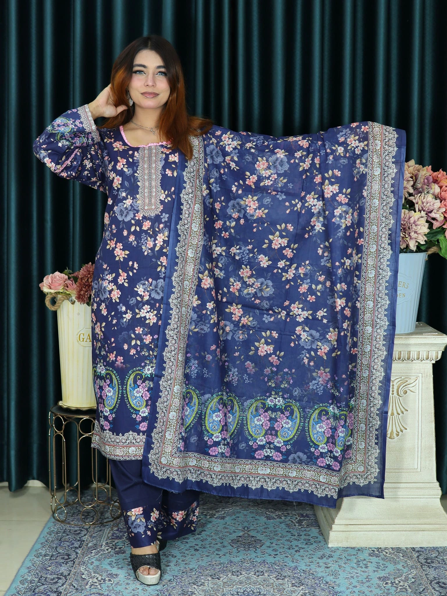 PAKISTANI INSPIRED MALHAR LAWN CODE ELEGENT 64 DEEP BLUE