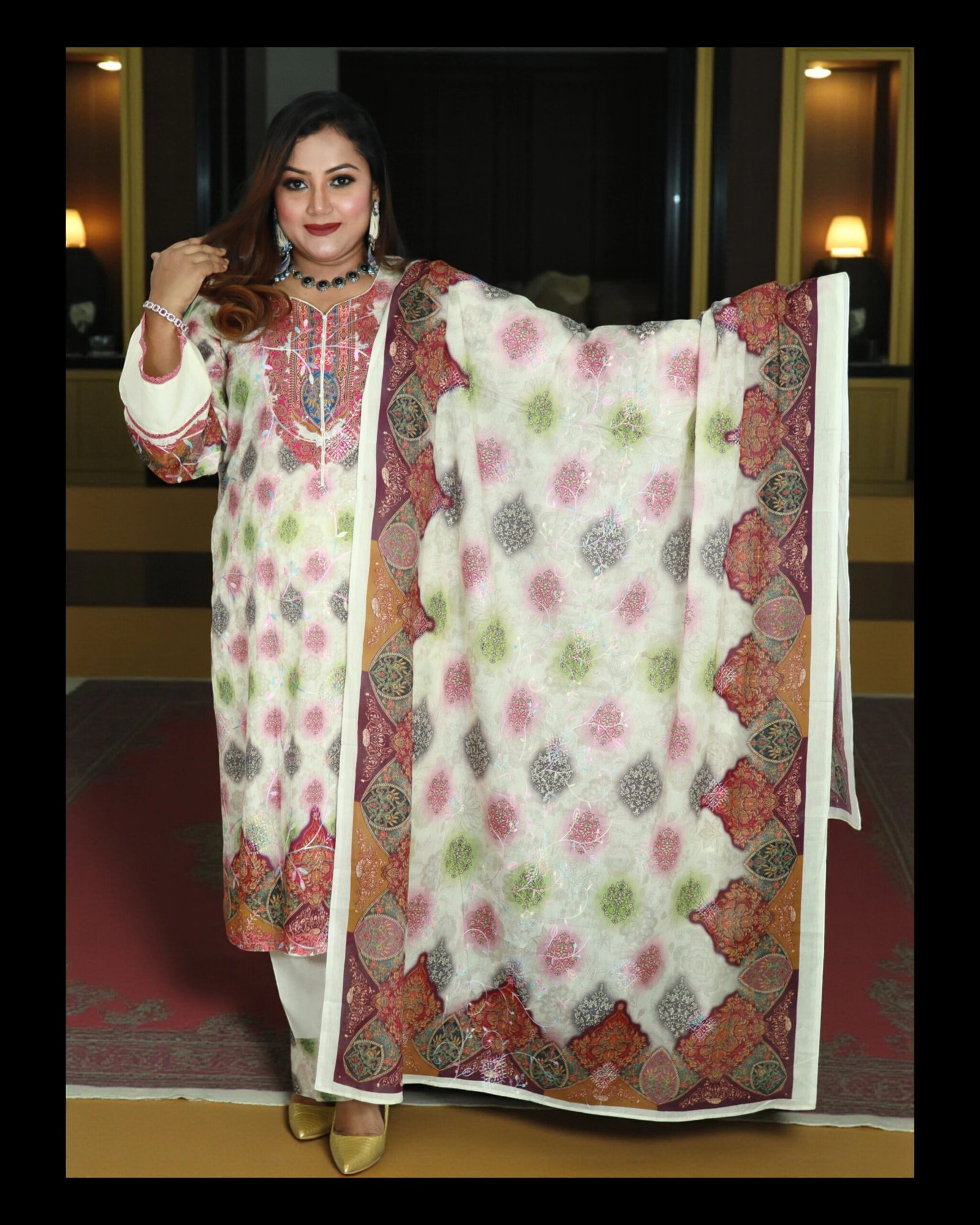 PAKISTANI INSPIRED MALHAR LAWN EMBODARY 101 WHITE PEARL